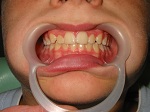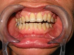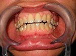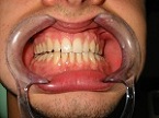 | Oscar es un varón adulto joven con múltiples recesiones gingivales motivadas por un desequilibrio oclusal, que ocasiona sufrimiento en el parodonto de determinados dientes, y por unos valores de AFMPs inadecuados para su edad. Presenta ausencia de funcionalización dentaria. | ||