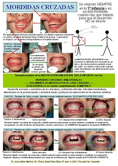 Póster sobre las Mordidas Cruzadas Unilaterales en la primera infancia. Sobre la necesidad del tratamiento temprano y sobre la utilización de las pistas directas como medio de estabilizar la oclusión de manera INMEDIATA. |