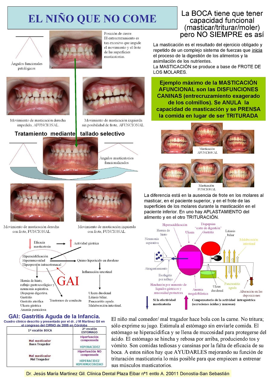 Póster sobre la limitación masticatoria en el niño que NO come, que le cuesta masticar y que tiene un comportamiento alimentario anómalo. Sobre el tratamiento desbloqueador de la masticación mediante tallado selectivo y su cambio INMEDIATO. |