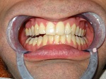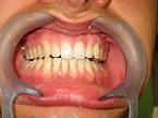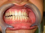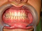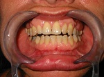 | Oscar es un varón adulto joven con múltiples recesiones gingivales motivadas por un desequilibrio oclusal, que ocasiona sufrimiento en el parodonto de determinados dientes, y por unos valores de AFMPs inadecuados para su edad. Presenta ausencia de funcionalización dentaria. | ||