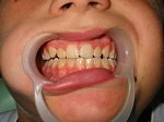 de los conceptos importantes de la terapéutica en la RNO. En este caso vemos la boca de un niño de unos 12 años que presenta un AFMP izdo notablemente menor que el dcho. Ello le aboca a una masticación unilateral izda que, al darse a una edad tan joven, tendrá como consecuencia un desarrollo asimétrico grave de sus maxilares, de sus ATMs y lo que es más grave, de su plano oclusal. |